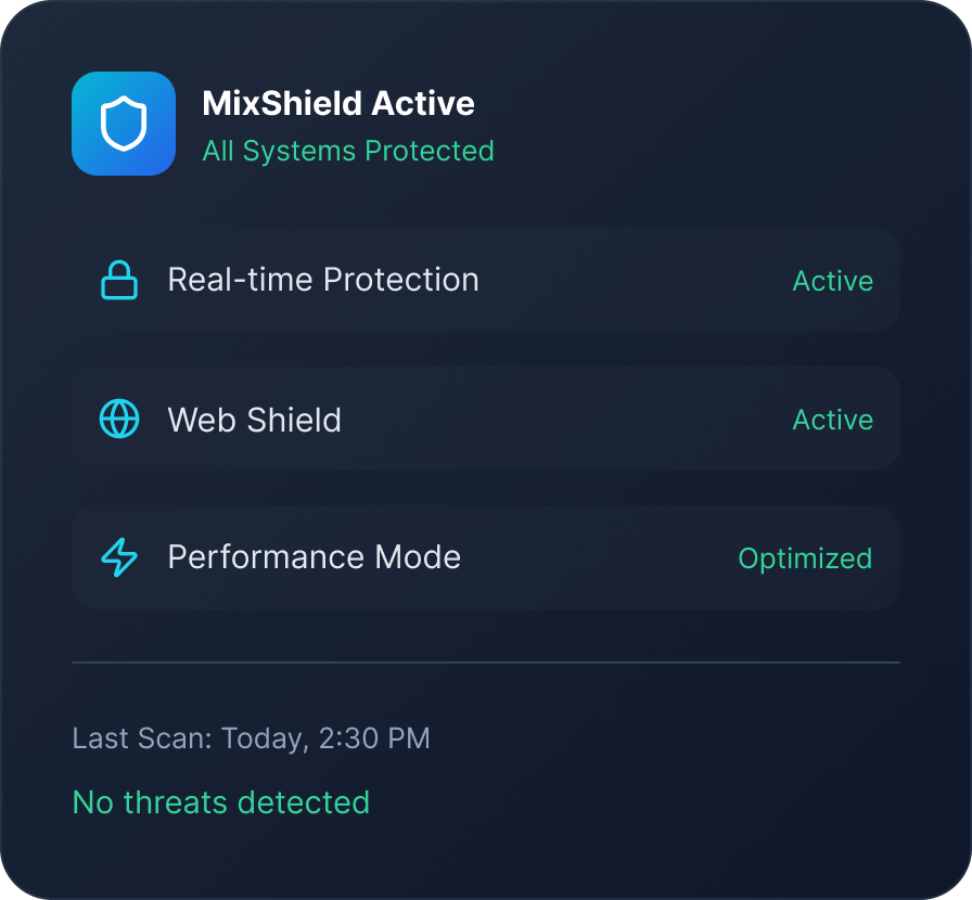 “As a small business owner, security is critical. MixShield’s multi-device support and low system impact make it the perfect solution for our team.”